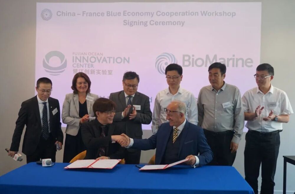 法国BioMarine公司是全球首个蓝色经济智库,致力于链接科研、商业与政策,推动中小企业成长,促进投资,设计国际海洋创新战略。法国Seventure Partners投资公司是欧洲领先的风险投资公司,专注于生命科学(健康、营养、食品技术)、蓝色经济和数字技术等领域具有高增长潜力的创新业务投资,业务范围遍布欧洲、北美及亚洲等。2022年,与BioMarine独家战略合作,共同成立了“蓝色发展基金(Blue Forward Fund)”,致力于投资蓝色经济领域的创新型企业,推动海洋可持续发展和环境保护。