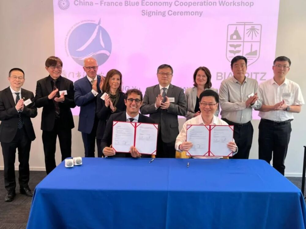 2025年6月10日,中法蓝色经济合作研讨会在法国巴黎成功举行。会议聚焦中法在蓝色金融与蓝色经济、海洋科技创新、海洋产业发展等领域的合作机遇与潜在项目,旨在加速中法两国及厦门与法国比亚里茨蓝色经济及海洋产业的可持续增长、技术创新和跨境投资与合作。