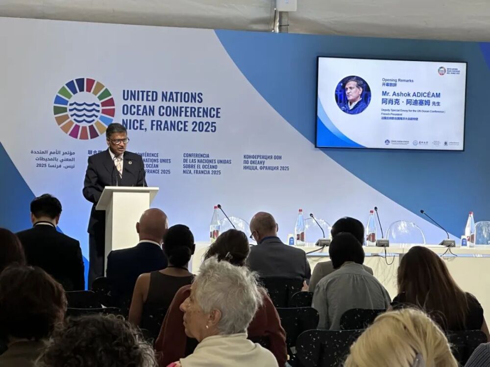 阿肖克·阿迪塞姆(Ashok Adicéam)回顾了中法在海洋领域取得的系列合作成就,包括《中法关于就生物多样性与海洋加强合作的联合声明:昆明-蒙特利尔到尼斯》等,并提出了全球海洋可持续发展领域的6个优先事项,分别是海洋治理、科学与创新、蓝色经济和可持续金融、生物多样性保护(30×30目标)、海洋公平与正义,以及国际合作等,期待中方在全球海洋治理中发挥更重要作用。同时,他还分享了本届大会的参会情况,共有来自超过125个国家的90位国家元首和15000名代表(含3000余名科学家)参会,旨在使海洋成为全球优先事项,共同应对气候变化。