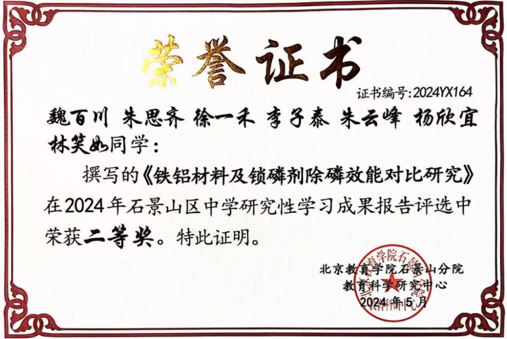 魏百川参与的学习报告获得区级二等奖