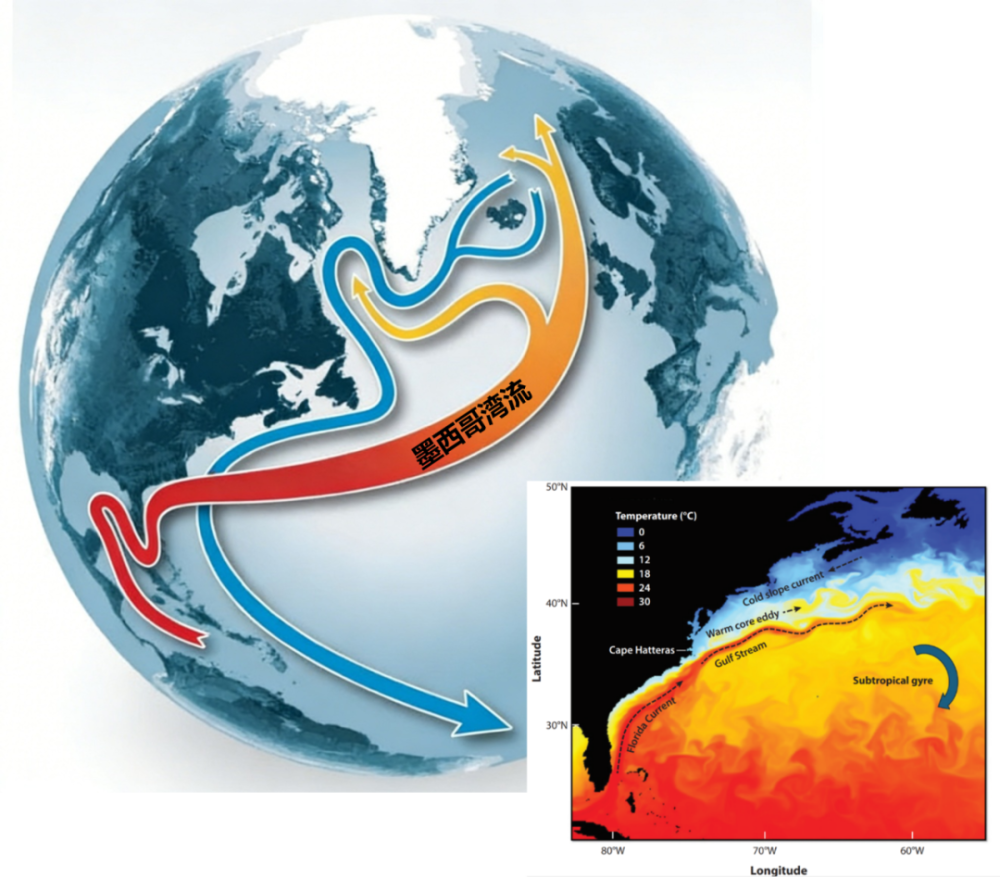 墨西哥湾流传输的巨大热量造就了欧洲温和的气候、北大西洋多样的生态系统,以及同纬度不同气候特征的地域差异,因此是海洋而不是太阳,塑造了地球上某个区域的气候细节。