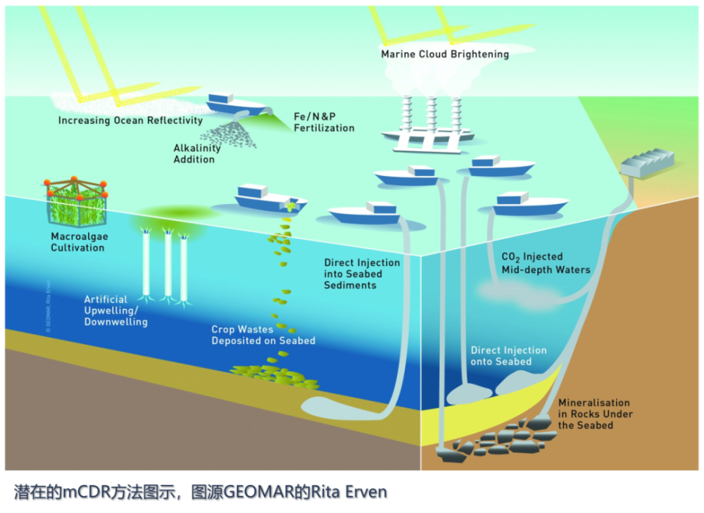 马丁时代做的铁施肥是非常粗放的一种模式,我们要转向精准的、高效的现代海洋二氧化碳去除技术(mCDR),例如:海洋的碱化增强;海洋的营养盐施肥,包括铁施肥、人工上升流、下降流、海藻养殖、生态修复以及电化学过程等等,都是一系列有科技时代感的、基于海洋碳中和的解决方案。