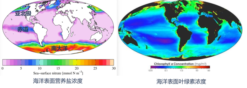 总的来说60%的深海大洋的表层是缺铁的,根据不同的“贫血”机理又可以分为两块:其一,30%的海洋荒漠区域由于缺铁限制了海洋通过固氮汲取大气当中的营养物质;其二,南大洋、赤道太平洋、北太平洋亚北极海区即使有丰富的营养物质,但就是因为缺铁生物仍旧长不起来。