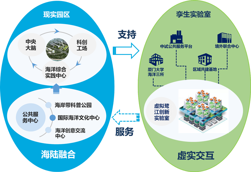 实验室基础建设紧密结合厦门海洋高新技术产业园区、厦门科学城的发展规划,相辅相成、互促发展。实验室通过布局高能级创新平台、引进高层次创新团队、孵化转化高效益创新成果,以科技创新引领产业化发展,推动厦门海洋高新区、厦门科学城发展,助力打造高素质、国际化的世界级科创名片。